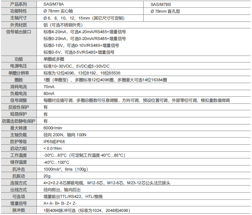 4-20MA、0-20MA、0-10V、0-5V防爆絕對值編碼器SAS/M78