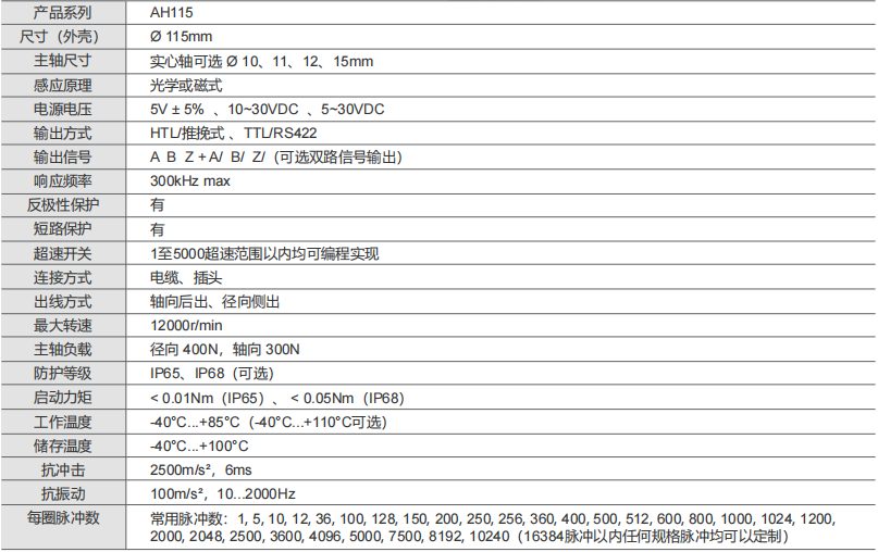 B10 歐規法蘭、帶有可編程超速開關具有防雷擊、過壓、過流、浪涌沖擊保護外殼具有防護等級 IP67的堅固外殼、可防止受到灰塵和液體的污染。用于危險環境的型號通過ATEX認證每圈脈沖數最高可達16384P/R可提供雙重輸出模塊,冗余掃描傳感器和兩個獨立的且電氣隔離的電子電路