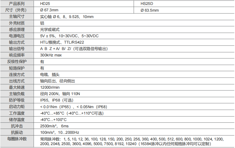25系列重載堅固的外殼軸型編碼器,防止海水和熱帶氣候陽極氧化鋁或鍍鎳外殼外殼具有防護等級高達 IP68的堅固外殼可防止受到灰塵和液體的污染。用于危險環境的型號通過ATEX認證精確的光電感應或磁式感應技術、電磁兼容性好每圈脈沖數最高可達16384P/R過壓、過流、浪涌沖擊保護堅固的金屬外殼、雙軸承設計、防護等級高達IP68具備反短接和短路保護、有效降低安裝錯誤對編碼器造成影響